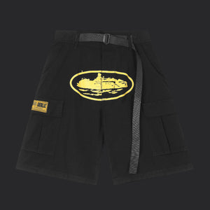Corteiz Cargo Shorts- Black/Yellow Logo