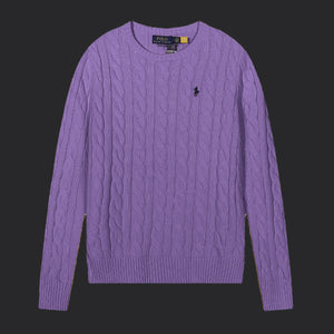 Polo Ralph Lauren Cable-Knit Wool-Cashmere Sweater- Purple/Black logo
